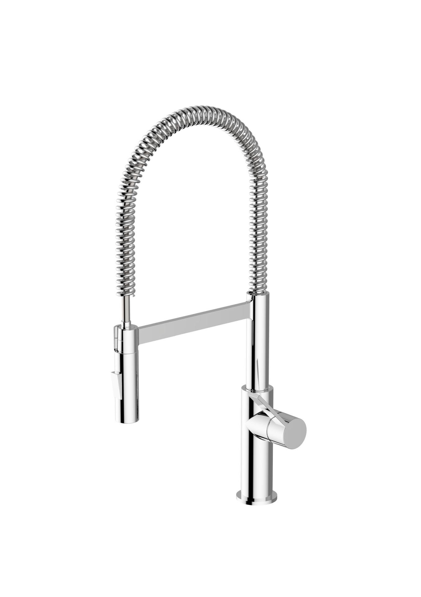 Dřezová stojánková baterie s horním otáčivým ústím a vytahovací sprchou