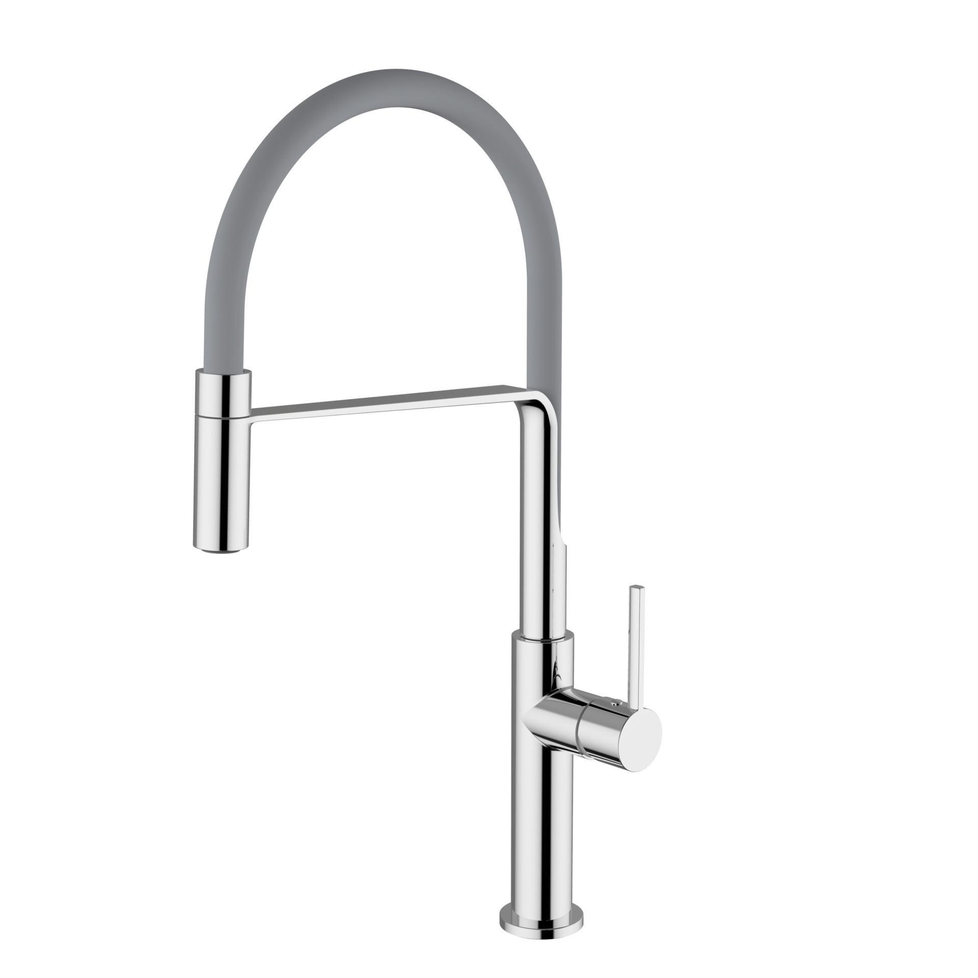 Dřezová stojánková baterie s horním pružným otáčivým ústím, šedá