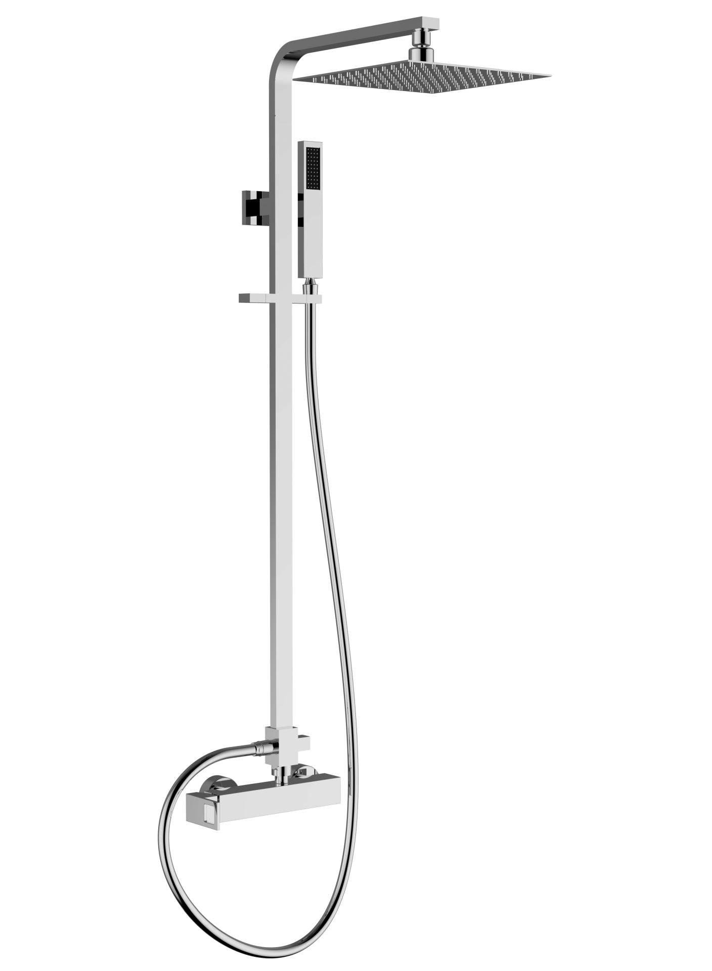 Sprchový komplet hranatý - termostatická baterie, sprcha s kloubem 250x250 mm a sprchová růžice - anticalcare, hadice