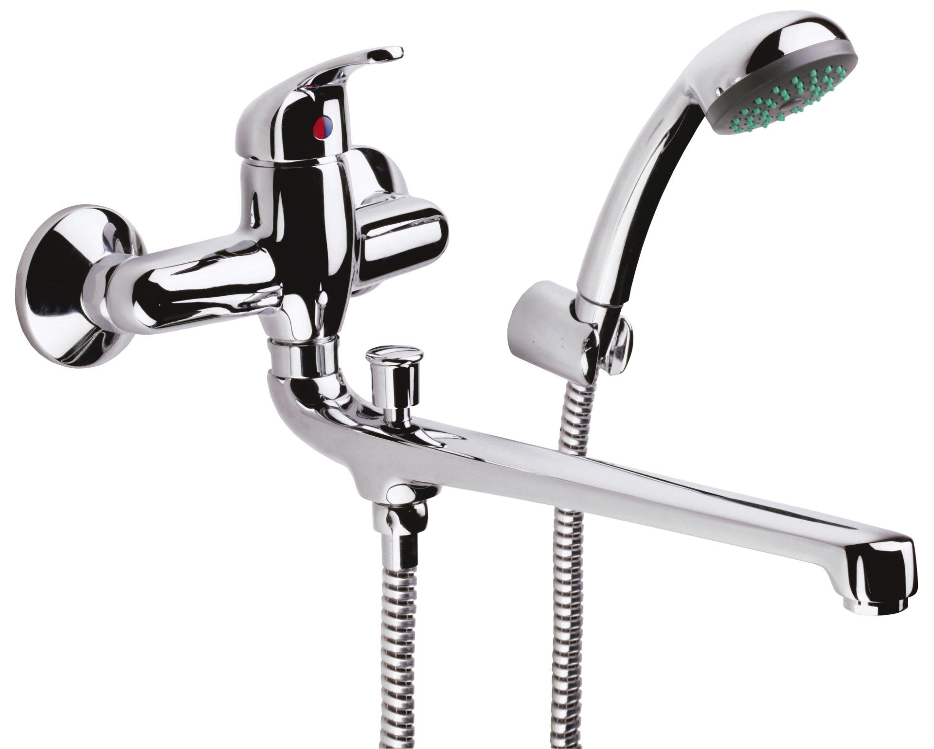 Kombinovaná nástěnná baterie vana-umyvadlo s příslušenstvím, ploché ústí 300 mm s přepínačem